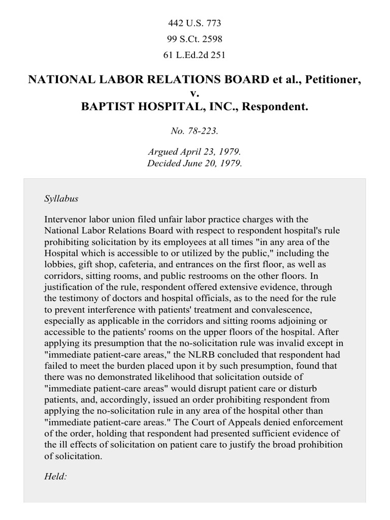 NLRB v. Baptist Hospital, Inc., 442 U.S. 773 (1979) PDF National Labor Relations Board